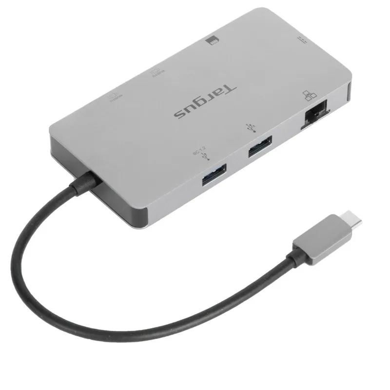 Targus USB-C Dual HDMI 4K Docking Station with 100 W power delivery, dual 4K @ 60 Hz support, Ethernet, USB 3.2 ports, SD/Micro-SD readers, and broad device compatibility, 3 Year Warranty.
