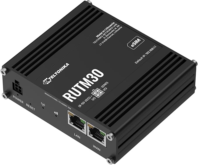Be the first to review “Teltonika RUTM30 Compact 5G Router, 4G LTE Cat19, Dual SIM, eSIM, Wi-Fi 5, 2x Ethernet Ports, Multiple VPNs” Cancel reply