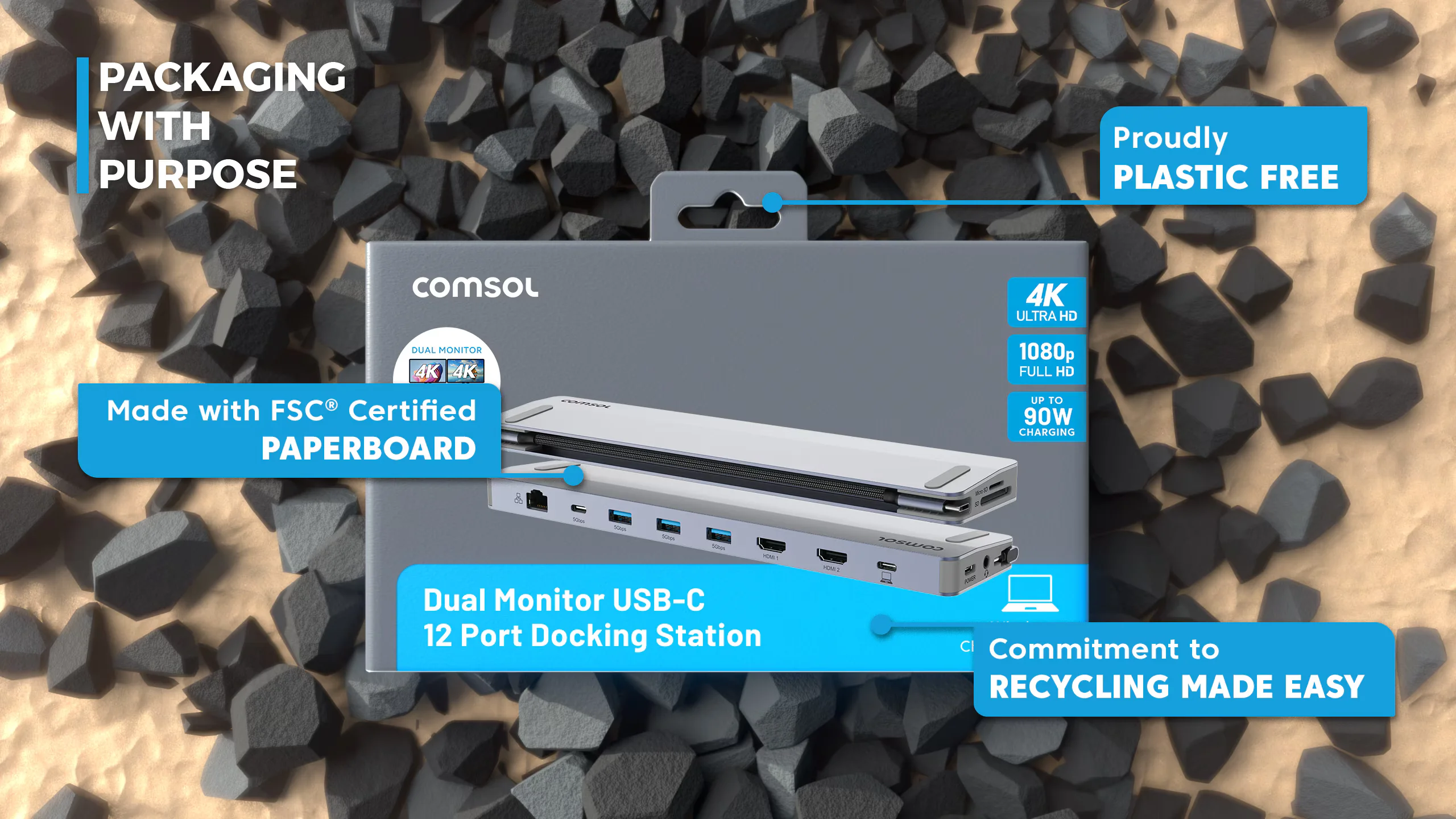 Expand your laptop connectivity with the USB-C Dual HDMI Monitor 12-Port Docking Station. Supports dual 4K 60Hz displays, fast data, Gigabit Ethernet, USB peripherals, and up to 90W laptop charging.