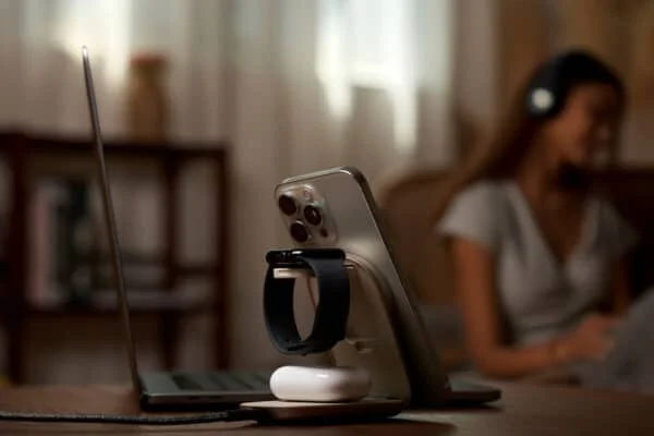 - Simultaneously charges your phone, watch, and earbud with a total output of up to 22.5W