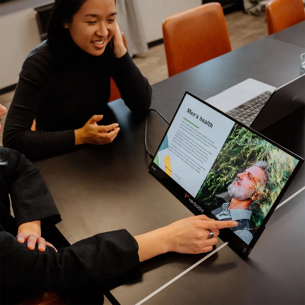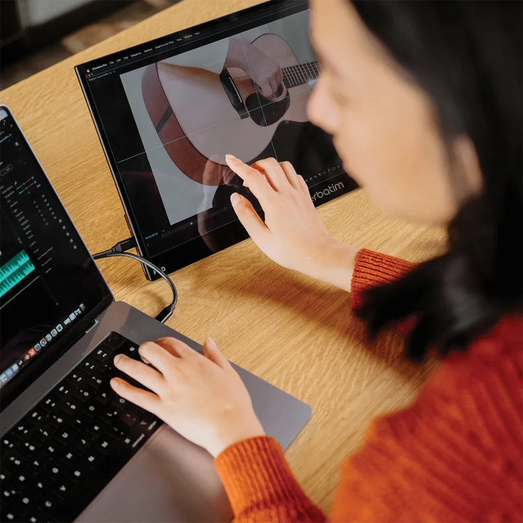 Verbatim 17.3″ Full HD Portable Touchscreen Monitor with slim design and responsive touch control, perfect for work, travel, and extended display use.