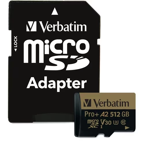 Verbatim Pro+ 512GB microSDXC UHS-I U3 V30 Memory Card with 100MB/s speed and A2 performance, ideal for 4K video, gaming, and high-speed storage.