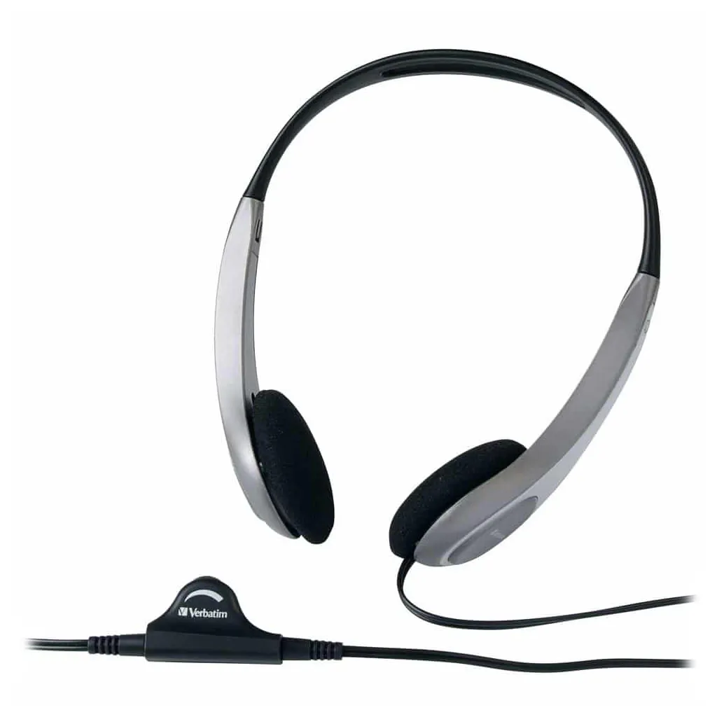 Verbatim 41645 Multimedia Headset with 30 mm drivers, inline volume control, soft foam ear cushions, and 3.5 mm stereo jack. Lightweight wired headset for PC, laptop, multimedia, and calls.