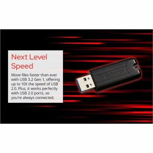 Portable and fast, ideal for all your storage needs! Available in a wide variety of colors and capacities, Verbatim® PinStripe USB drives make storing and organizing your important files quick and easy. The convenient cap-less design with retractable housing protects the USB connector and easily slides in and out. The USB 3.2 Gen 1 interface offers faster data transfer speeds versus USB 2.0 making it easy to transfer multiple files at once or larger files without error. No USB 3.2 Gen 1 ports? No worries! This is drive is backwards compatible with USB 2.0 ports. USB 3.0 is equivalent to USB 3.1 Gen 1 and USB 3.2 Gen 1.