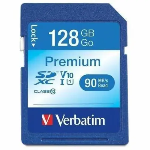 Verbatim Premium 128GB Memory Card offers high storage capacity, fast performance, and reliable data storage for cameras and multimedia devices.