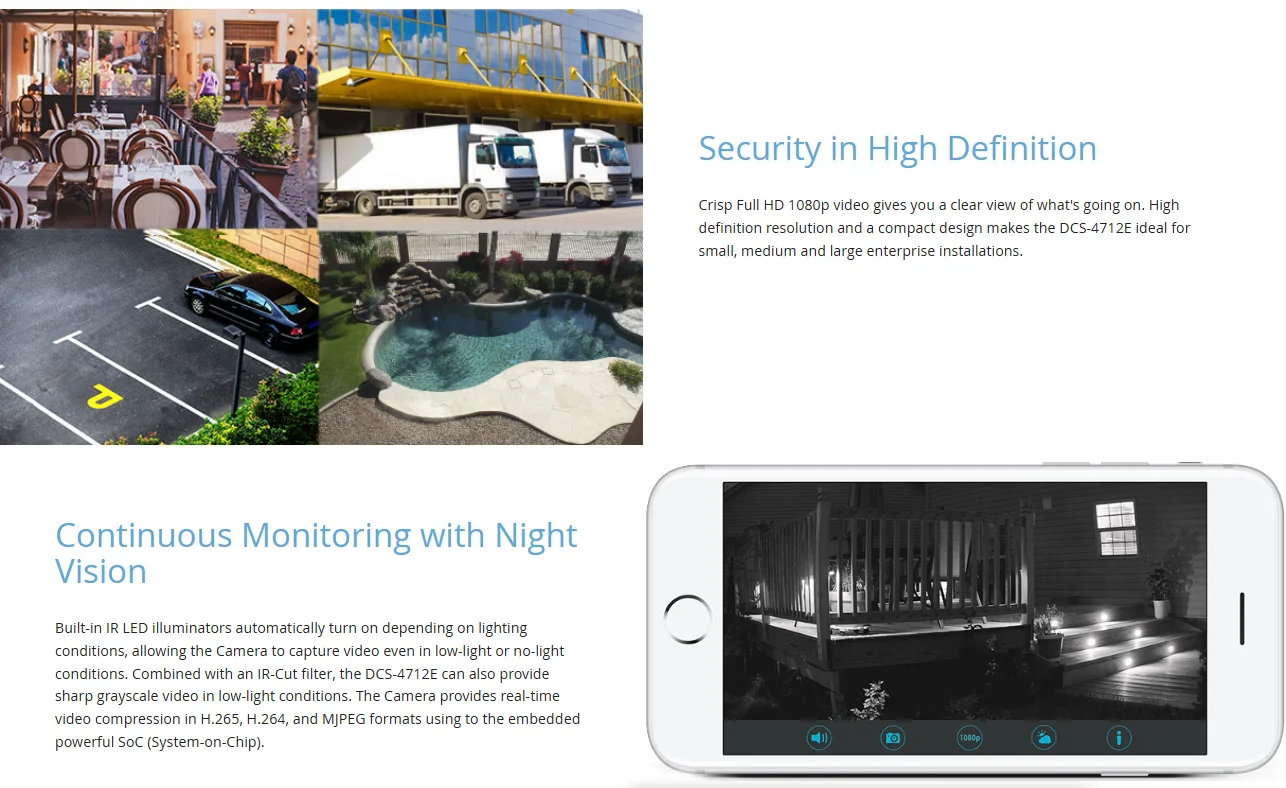 Provides detailed video at up to 1920 × 1080 @ 30 fps for clear surveillance footage.