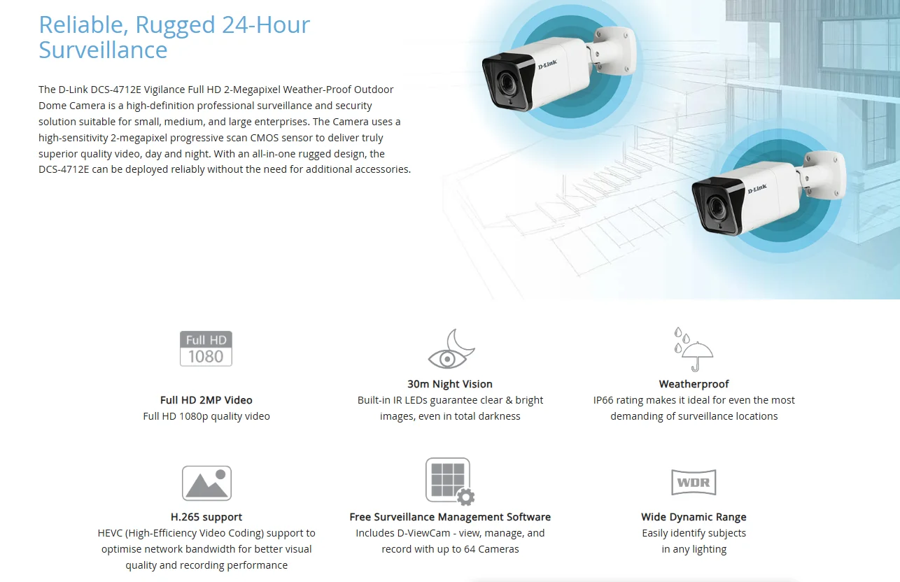 Vigilance 2 Megapixel H.265 Outdoor Bullet Camera -DCS-4712E